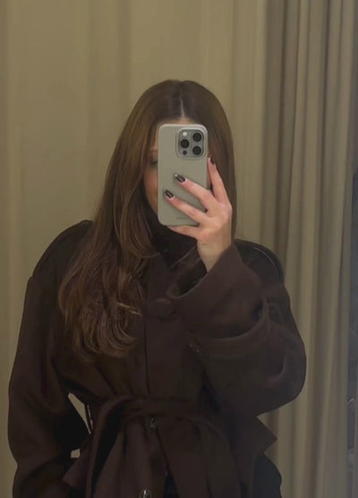 The Belted Wool-Blend Coat sits easy through the body with an optional self-tie belt and a high stand collar with buttoned tab, finished with clean facing and internal structure to hold its line. Made to wear on repeat; that’s the point.